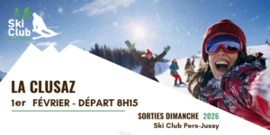 5ème sortie de ce Dimanche 1er Février à La CLUSAZ En raison du 2ème tour des élections législatives, nous décalons notre départ de 30 min, donc RDV à 8h15 au stade de Pers-Jussy pour un départ à 8h30. Le Car nous posera au parking cars «Salon des Dames» et restera sur ce parking.