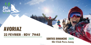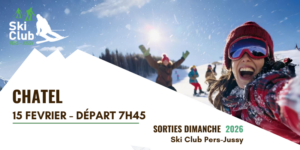 Début des inscriptions pour la 8ème sortie de ce Dimanche 22 Février à AVORIAZ : * 283 pistes • 650 km • 197 remontées mécaniques Altitude : 1100 m à 2600 m Poste de secours : 04 50 74 11 13 RDV au stade de Pers-Jussy à 7h45 – Départ à 8h. Le Car nous… Lire la suite »Sortie 22 février: AVORIAZ - Sortie 15 février: CHATEL