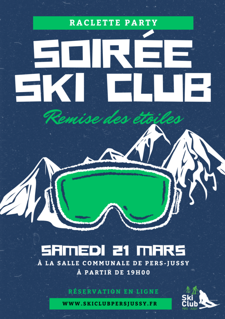 Soirée Ski Club. Samedi 21 marspar Ski club21 février 202621 février 2026 Et remise des étoiles Le samedi 21 mars. À la salle communale de Pers-Jussy . À partir de 19h00